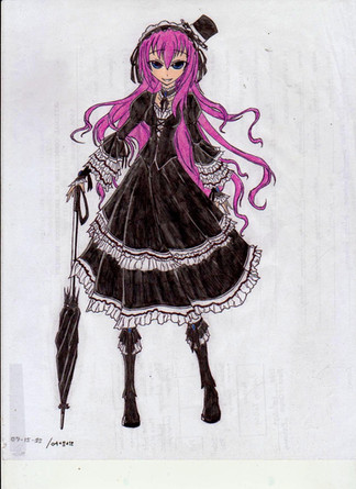 I love her clothes!! >3< *wanna steal them from her* And colors fit well, i love the darkness~