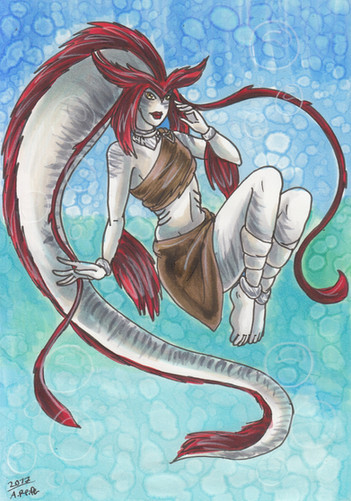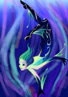 Wow that is really an awesome piece of art! Her elegant pose and how you colored her looks really nice. I also love the water whirl with the fish in the background!