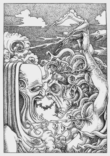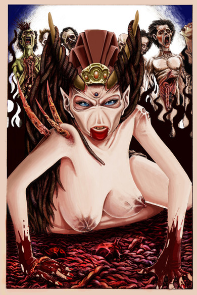 Wonderful detail and form. The shading is real nice, still allowing for plenty of in your face imagery that's not hidden by too much shadow. Nice work.