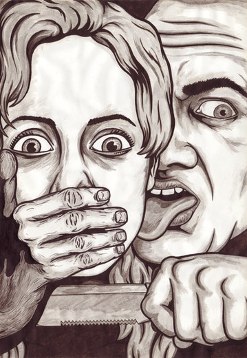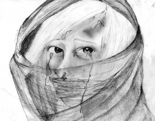 Wow, excellent emotion and wonderful technique. I love the contrast of the tape and mascara against the lighter portions of the picture--it's incredibly striking. Well done as usual. It's interesting to see some of your art that has a more realistic focus!