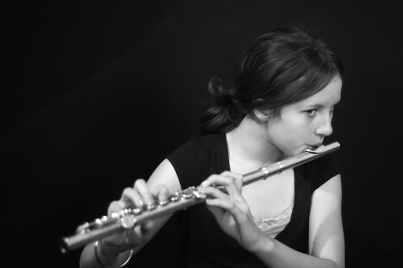 This is Katie, during her solo performance at music fest in Sitka. I focused on her hands, so her face is a bit out of focus, but ah well.Levels adjusted and border added using the GIMP.