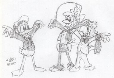This picture took so much time just getting used to drawing Ducks in Disney style lol xD I used refference for all of this, yes, EVEN THE BACKGROUND. Thank God for the pause button on video's lol XDThis is my first attempt at ALL of the three characters you see here; Scrooge McDuck, Drake Mallard (AKA Darkwing Duck) and Launchpad McQuack.