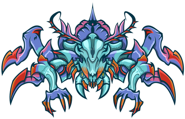Hard Shell lives up to its name with a jagged spiky outer carapace. I tried to replicate that with the sharp points seen here. The rest of the design was fairly straight-forward with its legs and claws. I do think the original sprite work lends itself well to a 2d emblem.