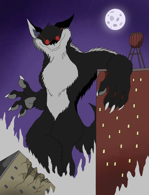 A werewolf kaiju? I think the city is doomed and pity anyone, directly beneath him.