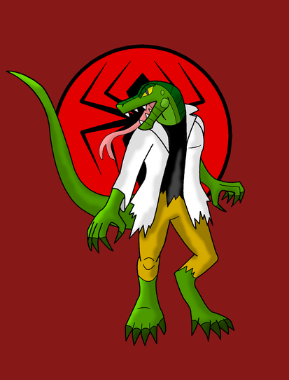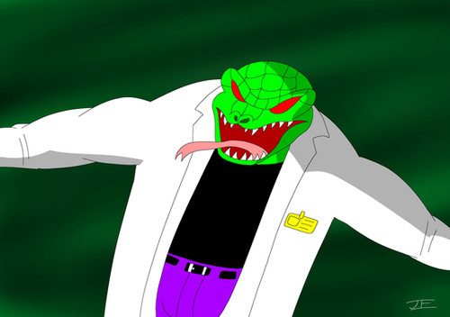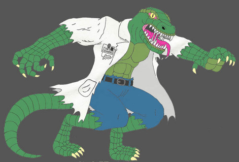 Dr. Curt Connors lost his arm while serving as an army medic overseas. Honourably discharged, he returned to America with a new obsession in unlocking the secrets of reptillian regeneration, eventually creating a serum that he believed would help humans regrow missing limbs. Testing it on himself however, he was transformed into the savage Lizard. His berserk rampage was stopped by Spiderman, who devised a cure to transform Conners back to normal. A grateful Connors repaid the favour by helping Spiderman on a number of occassions.The cure proved to be short-lived however, and Connors found himself transforming back into the lizard increasingly often. The Lizard was becoming a distinct seperate personality, one consumed with the desire to transform mankind into reptiles like himself for him to rule over. Over the years the Lizard became increasingly savage and feral, and Curt began to worry more about the consequences of his actions and lost all hope of ever finding a cure. The Lizard persona finally won, seemingly destroying what was left of Connors' mind and fleeing into the sewers of New York.