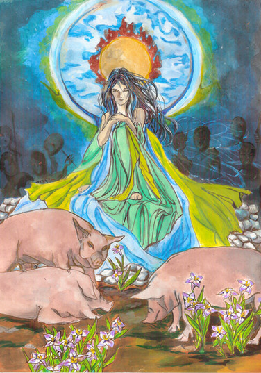I love how you make it look like she's coming to life! Great job!
