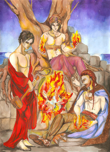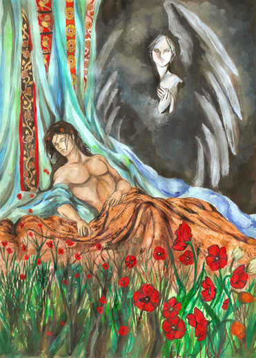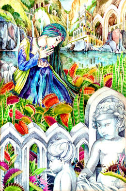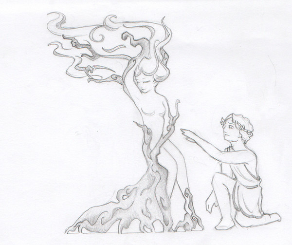 Based in the myth of Pygmalion, who is the sculptor who falls in love with a statue he has made. The gods make the statue become alive. This picture is for ; I am so sorry for the delay. It is not that it takes me so long to finish something, but don't have a scanner anymore (mine is broken) and nobody around seems to have a decent one. It took me weeks!! to borrow a half-decent scanner to scan this picture.-Basado en el mito de Pigmalión, el escultor que se enamoró de su escultura, a la que los dioses vuelven a la vida. Esta imagen es para . Está lista desde hace semanas, pero no tengo un scanner decente donde escanear mis últimos dibujos..