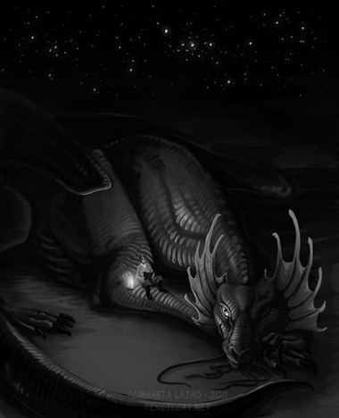 The detail in this is amazing and the time you took to make everything as good as you could make it is obvious and makes the picture on the whole so much better. I'm not sure what you don't like about it, but I can tell you that the concept you have going on that has to do with the wood muzzle being part of the larger dragon is very good... Also, the sort of mossy/drooly/starry background you paired with this gives off just the right ominous sort of feeling it needs.
