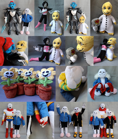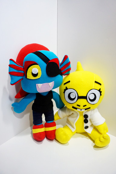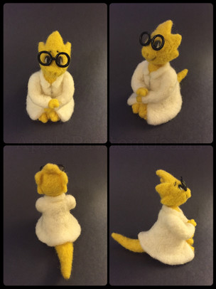 Alphys stands about 12" tall and is made from minky and knits. Her labcoat has cute little buttons and I got her glasses from an online doll supply store rather than embroidering them directly on her face (which was drawn by min-min-minnie). She is chubby and short, just like in the game, but I also adapted her character design a bit to be cuter and more plush friendly. I love how she turned out, she looks good from every angle. There are only a few more Undertale characters I haven't made yet. As I complete more I have been taking some fun group shots that I plan to post later.Related content