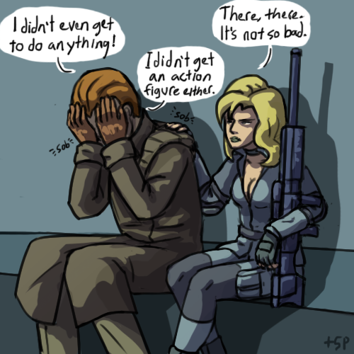 This may sound like a late response but where you put that Otacon weighs so little, originally they were going to make him a fat guy XD Anyways, this was awesome ^^ You're awesome! More pwease?