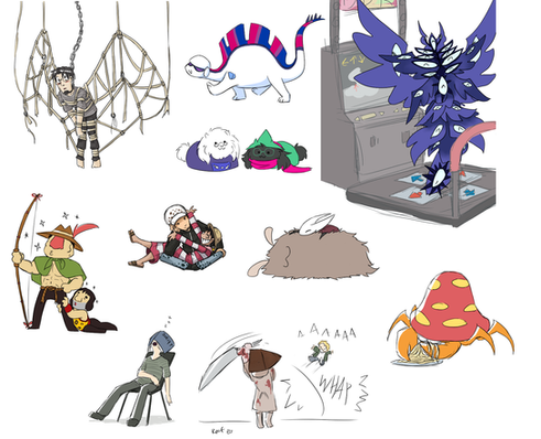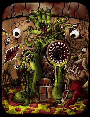 The colors do clear stuff up a little, though I could discern it well enough in the line art. It's really neat that the drawing still has that same overwhelming sense to it. Awesome details, great colors.