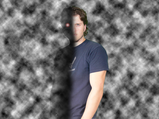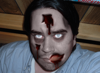 la foto di un ragazzo con l'effetto zombie creato usando photoshop,