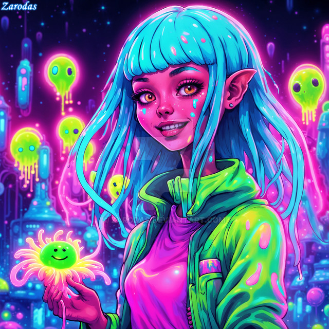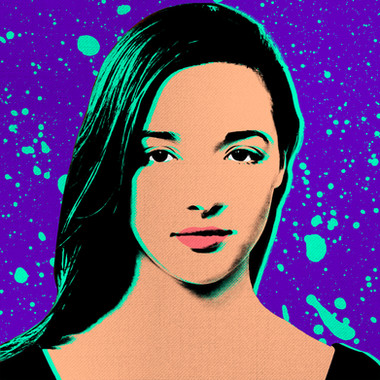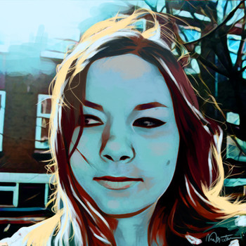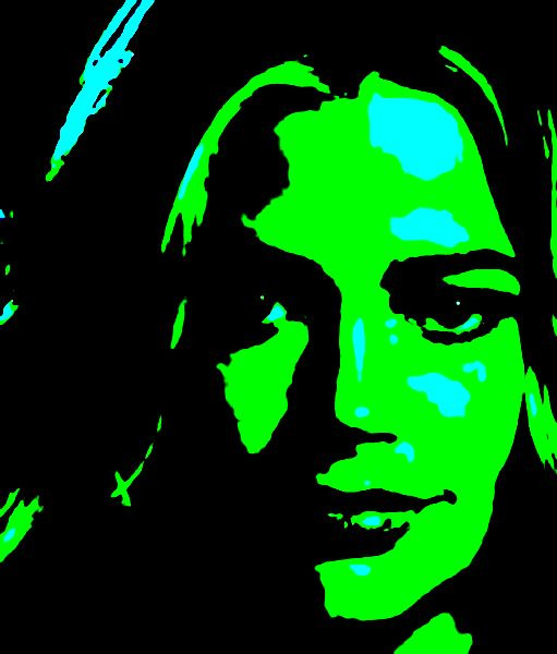 the photo of a girl with the stamp effect and color nuances (pop art) created with photoshop,here you can see how to do it