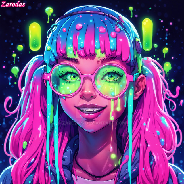 la foto di una ragazza con l'effetto timbro e delle sfumature di colori (arte pop) creato con photoshop,