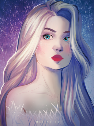 Super pretty! I love the colour palette and the gradients of the hair and face. You really get a sense of cold looking at it