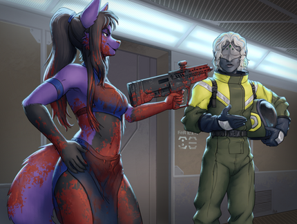 #scifi #alien #originalcharacter #commission #cyberpunk #space #anthro #anthropomorphic #background #fullcolor #furry #interior #prosthetic #prostheticleg #galeacoma