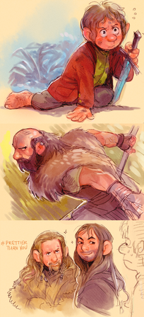 Bilbo, what are you doing? Don't you know that Thorin loves cute things? At this rate, he'll die of blood lossΒ and then what'll we do?