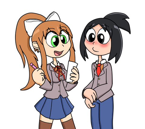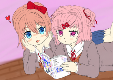 I recently played through Doki Doki Literature Club, and I really liked it! I didn't like Natsuki at first, but when I played through her route, I noticed how similar she was to another character that took me a while to warm up to.They're reading the first volume of Parfait Girls.