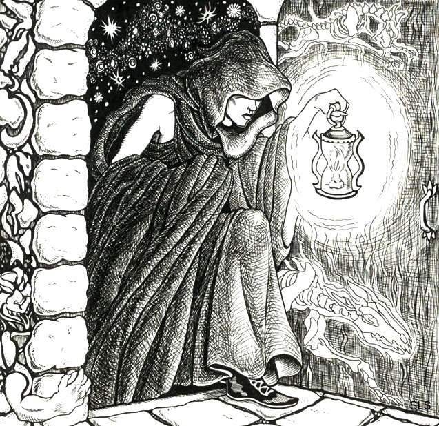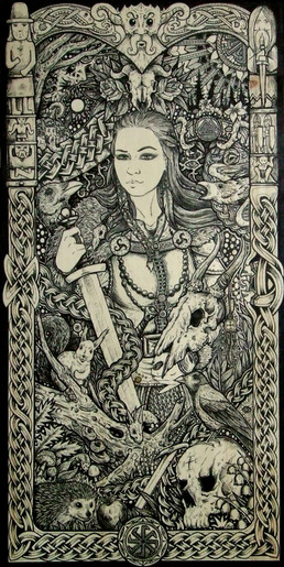 The border is a work of art in itself! Beautiful details...it's amazing how you've made the picture so dense, and yet the major elements still stand out and grab the viewer's attention. Very impressive.