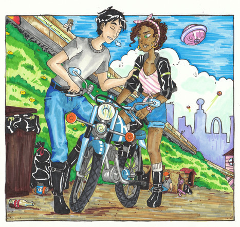 The girl is really Adorable!Β The bike also turned out really nicely! I like how you use black hard shadows gives it a very comic book like look to it!Β