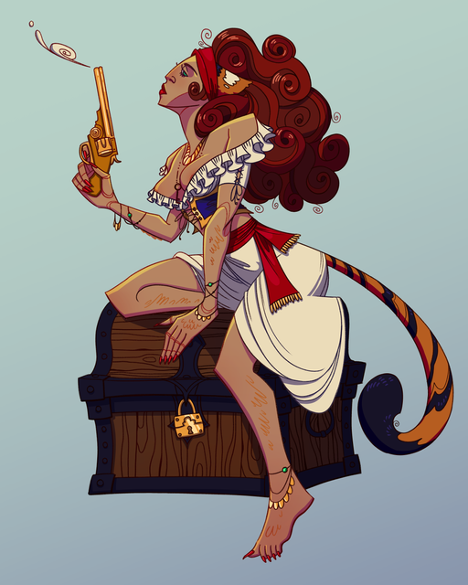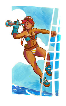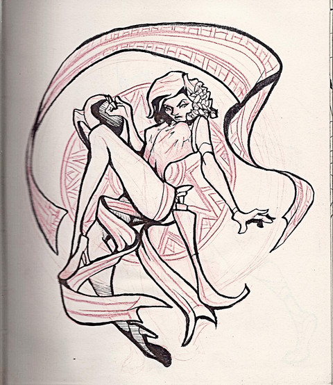 Let's hope she's careful with that!Another ballpoint pen sketch that I scanned (you can still see the blue pencil underline) and coloured digitally.