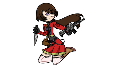 For Shocky-Shiver 's contest. The character, Gallows, belongs to her (or him), the drawing to me.So yeah. A toolbelt, cause she's a mechanic. And she's running from someone. Her boss? Hope you like it.