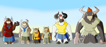 Their hair grows on the bottom back of their heads, above the nape. They can also have a strip extending from the center top of their head, between their horns, down toward the nape. Men can grow full beards. Beards can be braided. Women tend to braid their hair in one or two strands. They also swing their hair around their horns. Women tend to keep their hair longer than men. both can also keep their hair short or bald. Peasants and low rank military tend to favor short and bald styles.