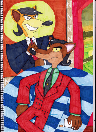 I really like how the background turned out too. Once I drew them, I wanted to do some kind of comic effect and the overlapping lines and clashing colours were really fun. I also found some markers to give a pop of brightness along the edges.