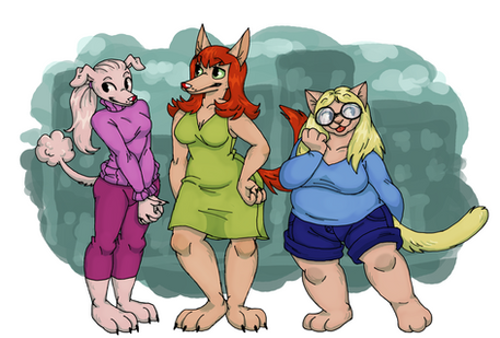 Continuation of this: www.deviantart.com/zealousshad…I actually made some beautiful hand drawn pencil sketches last year to figure out what the characters would look like from different angles, but never had time to post them. I'm redrawing them on Microsoft Paint. Really wish I had a drawing tablet -- this alone took me 4 1/2 hours. But it's worth it now, because I can experiment with colours of clothing. In most animations, the characters will have one signature look and never change their clothes. A few shows, like Gravity Falls, go the extra mile and give their characters a wardrobe. I'm wondering if I can do the same, but keep the silhouettes nearly identical, so as to give my characters a bit more variety.