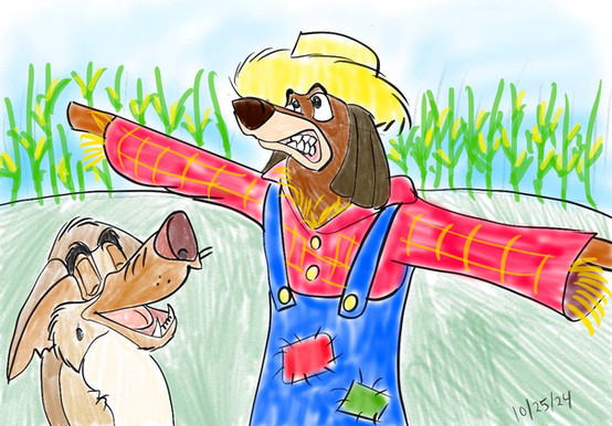 “Woah there, Nellie. Where do you think you’re goin?” The roo hauled him back by his overall straps, startling Pinstripe badly.
