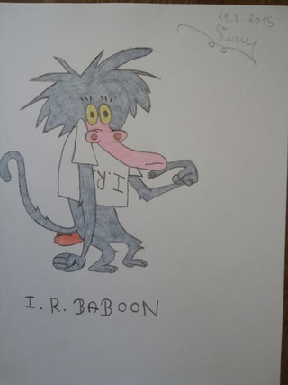 As a fan of David Feiss' work myself, I always had sort of a sympathy for I.R. Baboon as he only wanted to be accepted and loved by everyone while I.M. Weasel always got all the attention.I.R. Baboon (I Am Weasel) belongs to David Feiss and Cartoon Network.