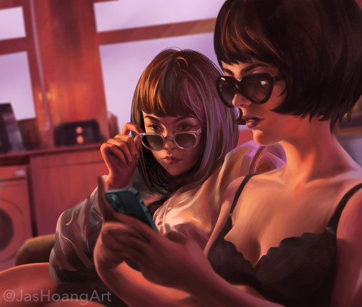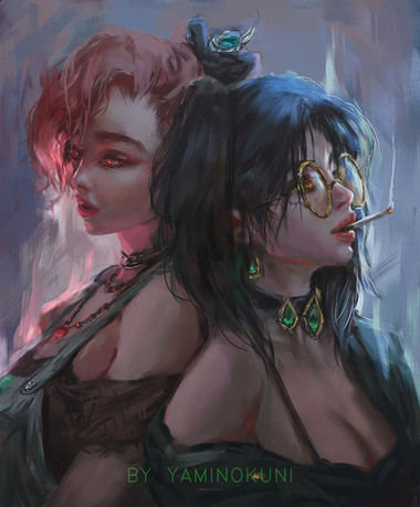 Hello hello! Zechomo here. After a year, I've finally finished it! (And for the record, I would continue it, but I'm already bored with this drawing). The characters are my beautiful C-19 (the girl on the right) and Ciara (another oc, the girl on the left).There has been a very drastic change since I started it until now, I hope to publish something soon to establish better this new style I'm finding, I have a big dilemma between whether to use lines or just stains of color, and I think I'm finding a certain reconciliation between the two.