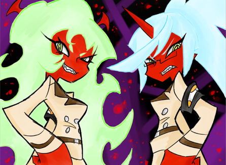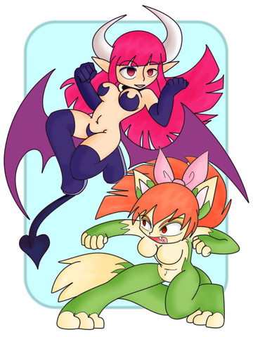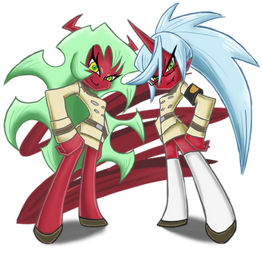 Friend's character Vix and my Pivot as succubi, requested by said friendRelated content