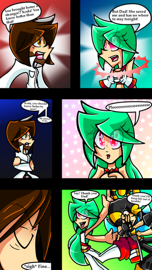 Just this week'sĀ comic update.I'm satisfied with how this page came out. My comic quality jumps all over the place from week to week and it's frustrating, but this one was acceptable.