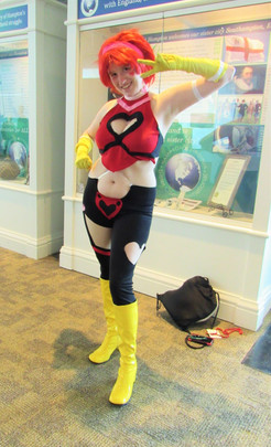 This was the third Cheesecake drawing. I started off just drawing her in a strapless bra- but realised that actually adding straps (particularly partially falling off ones) made it appear saucier. I had just been watching a fair bit of Azumanga Daioh at the time too- so a lot of the face is very Azu inspired. ^_^ Same about the proportions being screwy- but same again about still liking it. This one was one of my preferred of the Cheesecake series.Special gold star to anyone who actually noticed that the cheesecake is smaller- it's like the more it's gone the closer we are to the end of the series!