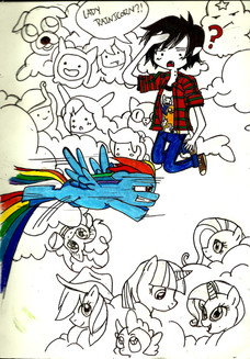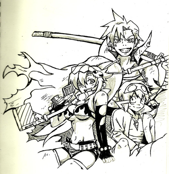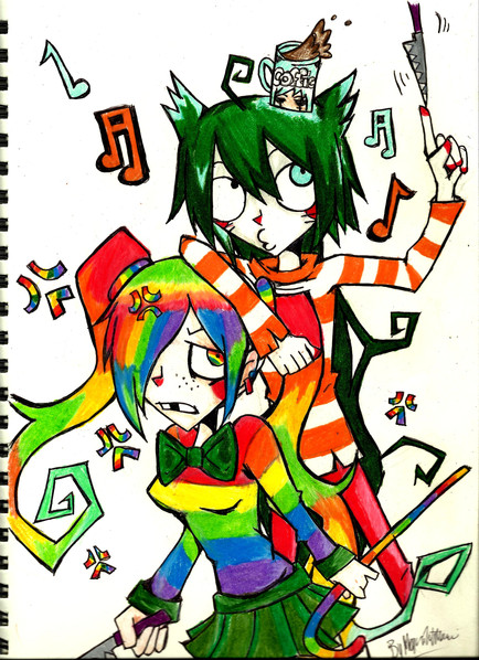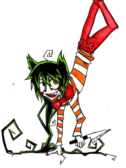 I drew this is in Demiseman art style. He too is one of my top favorite D.A artists.I can't stress how bad my scanner is. His hair and stuff are actually acid green but no matter how i change it it stays blue so mad.. >
