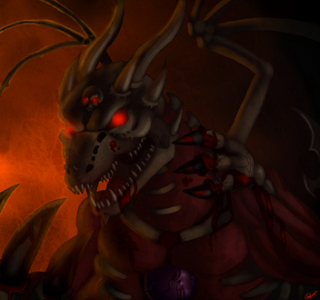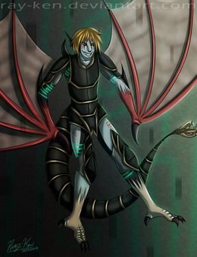 Another piece commissioned by of Kurai's additional form. It's supposed to have some kind of demonic backstory but knowing him, I will just say it's based on him wanting a Jelly form and something related to tricking me to draw a fetish pic with skeletal dragon.Art: Me