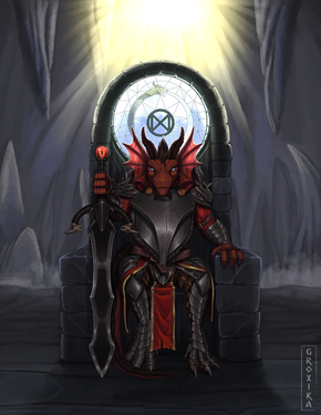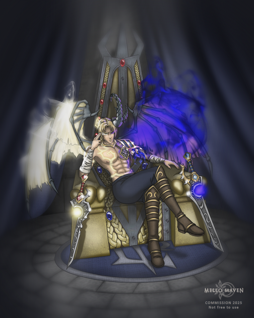 A piece commissioned by bladeson123 of Sen sitting on his throne.Character: bladeson123