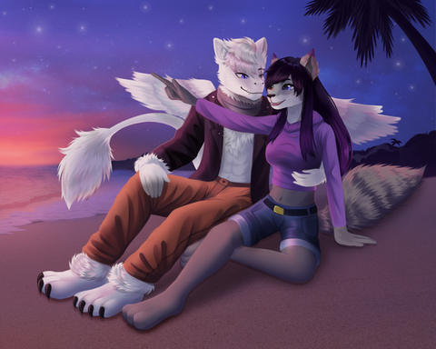 A piece commissioned by ReavenTehDerg (Steam) of his and his boyfriend by the beach.Art:Me