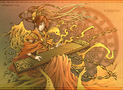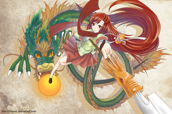 I see some Asian elements in this picture, but I admire the skirt, it looks difficult to draw. I love the hair as well, excellent Job.