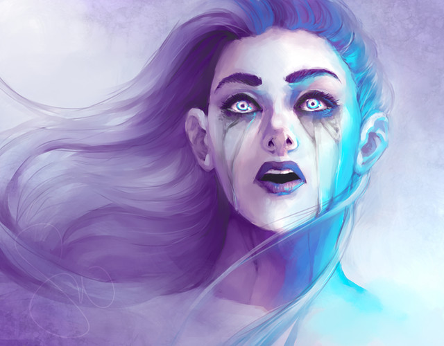 This is very lovely, I really like how her hair is in her face. I really like the style!