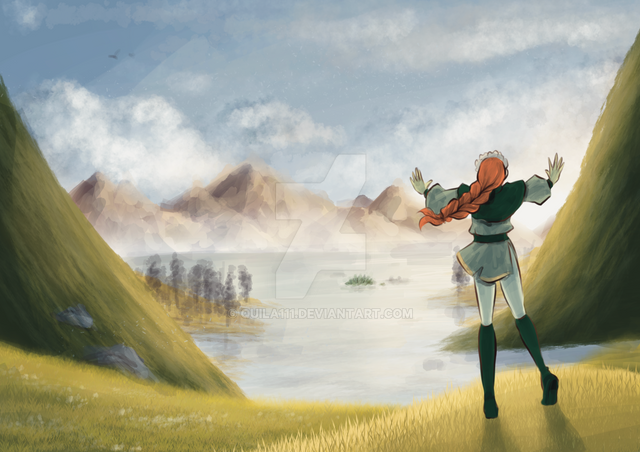 uhmm... I guess I'm trying out a new style?This was super fun to draw ^^ and I need to get myself pumped for writing OD so I drew a scene from my head. This is Ca'el with Ceres' hometown Leith in the background... I guess? I was kinda just drawing stuff.
