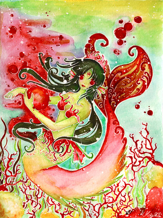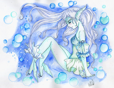 #anime #animegirl #aqua #cute #kawaii #waterbubble #mermaid #sirena #traditionalart #watercolor