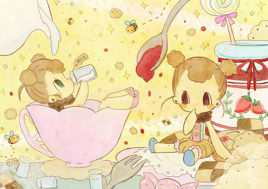 Well this sure stands out of your usual, semi-realistic style. Very cute work.