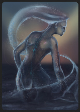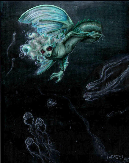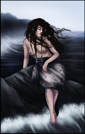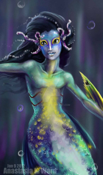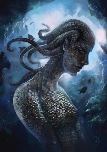 This sketch had been lying around for quite a while and today I felt like doing something on a tablet, so I whipped this up.So, boo-hoo I can't paint water... sue me. I do love scales, thought....