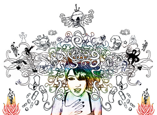 there is a slight symbolism from the Egytpian mythology (note the hand that is holding blue-haired head) - "Ka" or soul.. it is shown as currupted..
