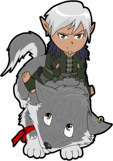 Just to note for anyone who dosen't know... The wolves are the size of regular wolves, the elves are just really small. They don't get really tall and stuff until they are REALLY REALLY REALLY old. And, they only have three fingers and a thumb.