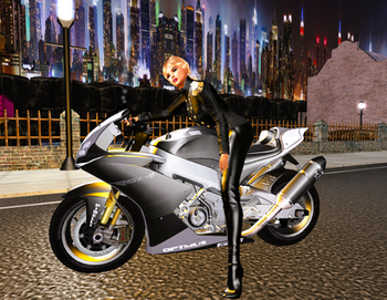 I hope she has the kick stand out though, wouldn't want that heavy bike to fall over