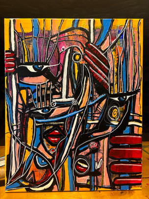 It's mostly nail polish that I took from my daughters' cabinet. They've been gone awhile. I used a little yellow from a paint can. I also used some markers in places. My first painting at 58.