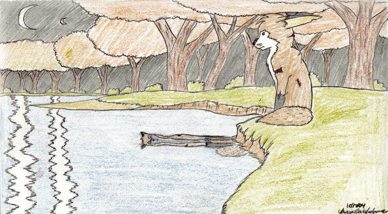 This is the old version of Reflections, which I uploaded the previous night. This one I colored in pencil, since I didn't have Photoshop back then. I did think to ink the thing before coloring it in, though.Related content